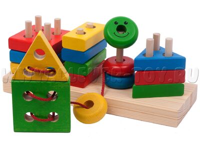 - Деревянный конструктор "Геометрик". Сначала малыш будет знакомиться с деталями, рассматривать их, пробовать на вкус. Дети постарше будут подбирать нужную фигуру для нужного отверстия. Данный конструктор "Геометрик" можно использовать как рамку - вкладыш и шнуровку. Эта увлекательная игра займёт ребенка на долгое время. И станет прекрасным новогодним подарком для вашего малыша!