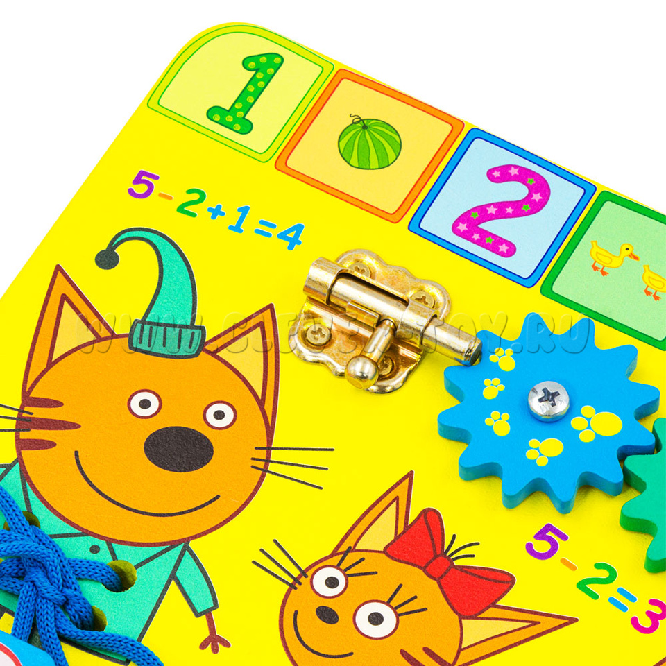 Красочный и позитивный бизиборд "Учим цифры" (лицензионный бренд "ТРИ КОТА"), созданный по методике Монтессори, обучает счету, знакомит с музыкальными звуками, цветами радуги; развивает навыки шнурования, мелкую моторику, воображение, логику и речь. Герои любимого мультфильма обязательно помогут в этом!