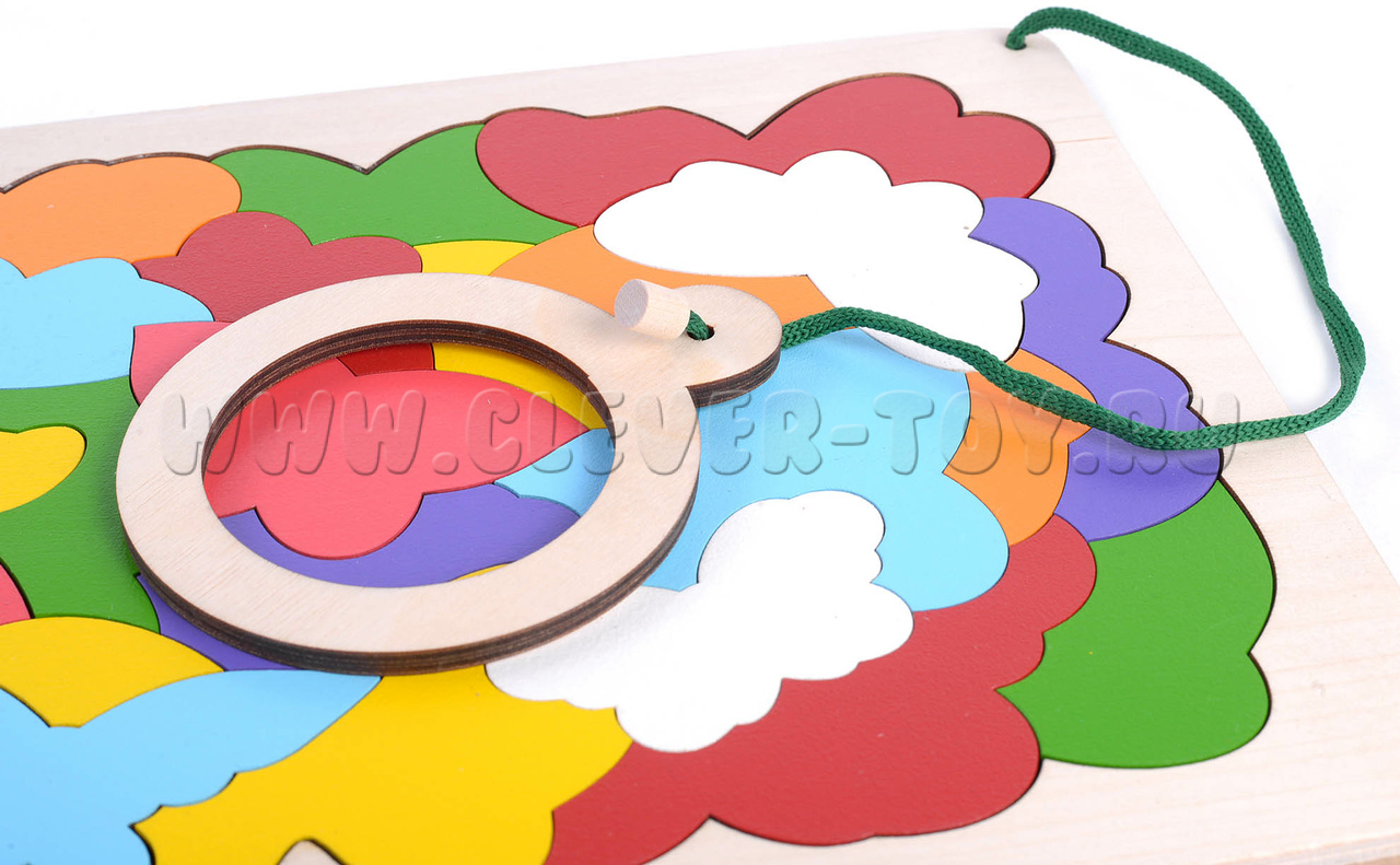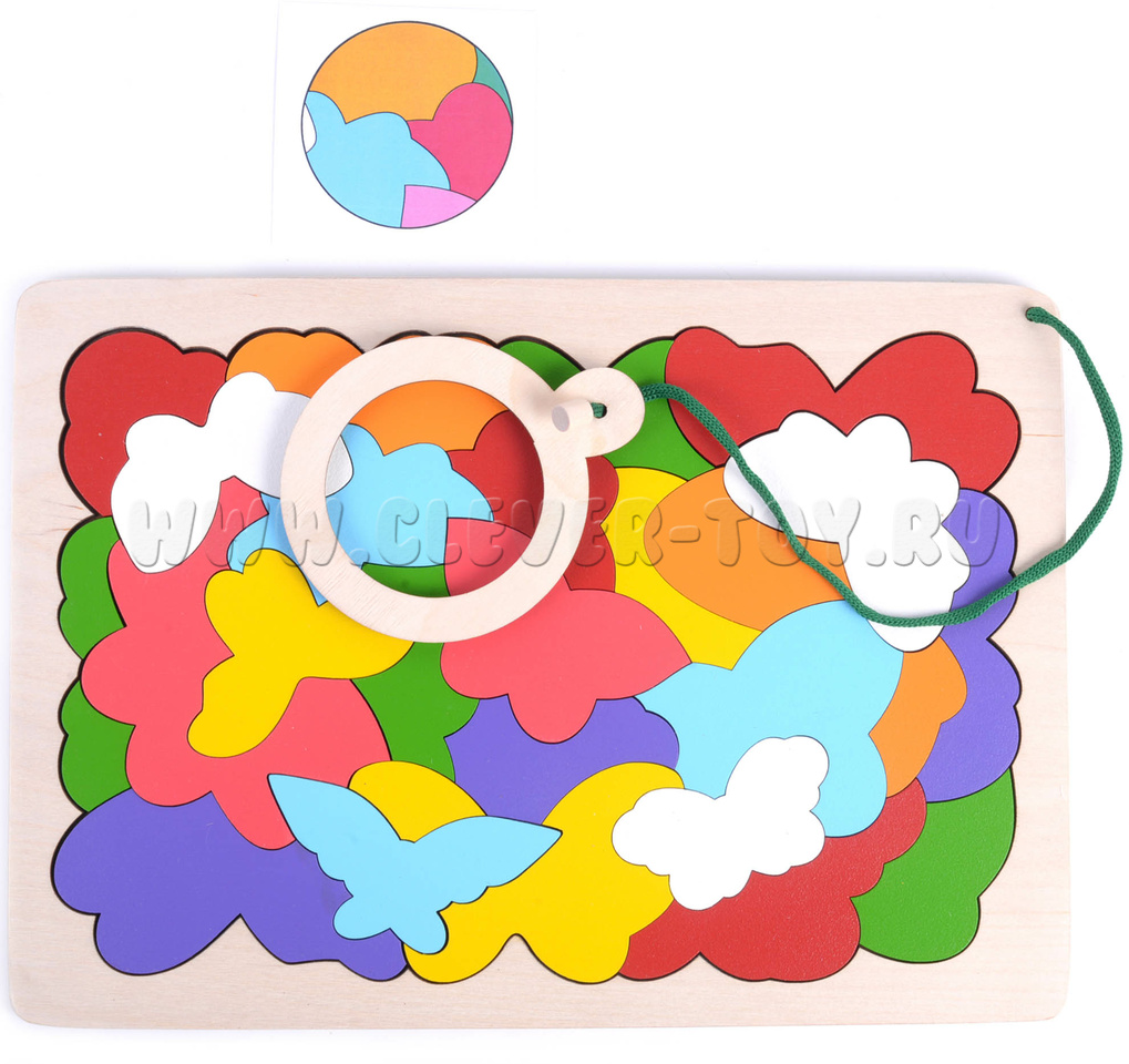• Мозаика - размер 295*258 мм (27 элементов) с деревянной лупой диаметр 85 мм.