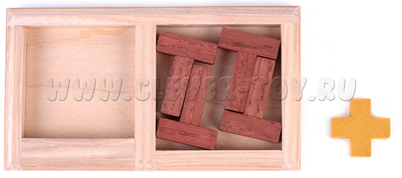 Головоломка "4Т+” имеет 3 задачи: сначала нужно расставить все четыре фигурки «Т» в большой рамке, затем – в малой. Затем нужно собрать фигурки «4 Т» и «плюс» в большую рамку. Несмотря на то, что игра может показаться легкой, она скрывает непростую головоломку, которая потребует от игрока смекалки и находчивости.