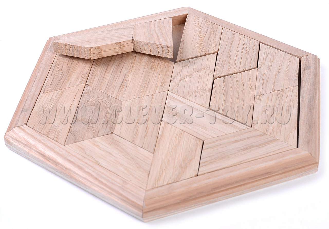 Головоломка состоит из 9 элементов и шестигранной коробочки.