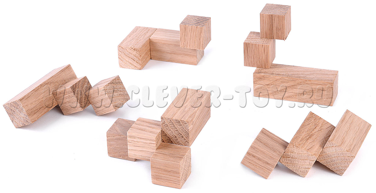 “Индейская пирамида” – головоломка из 5 крупных элементов. Ваша задача – сначала разобрать головоломку. Затем, вы можете собирать фигуры из фотографий в приложенной инструкции или же придумать что-то свое.
