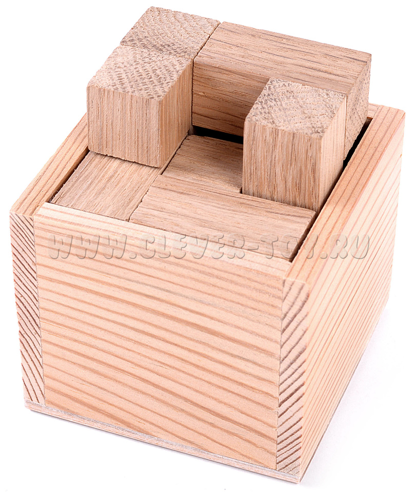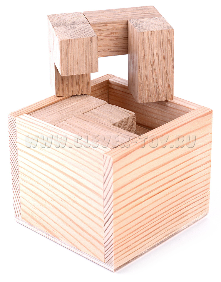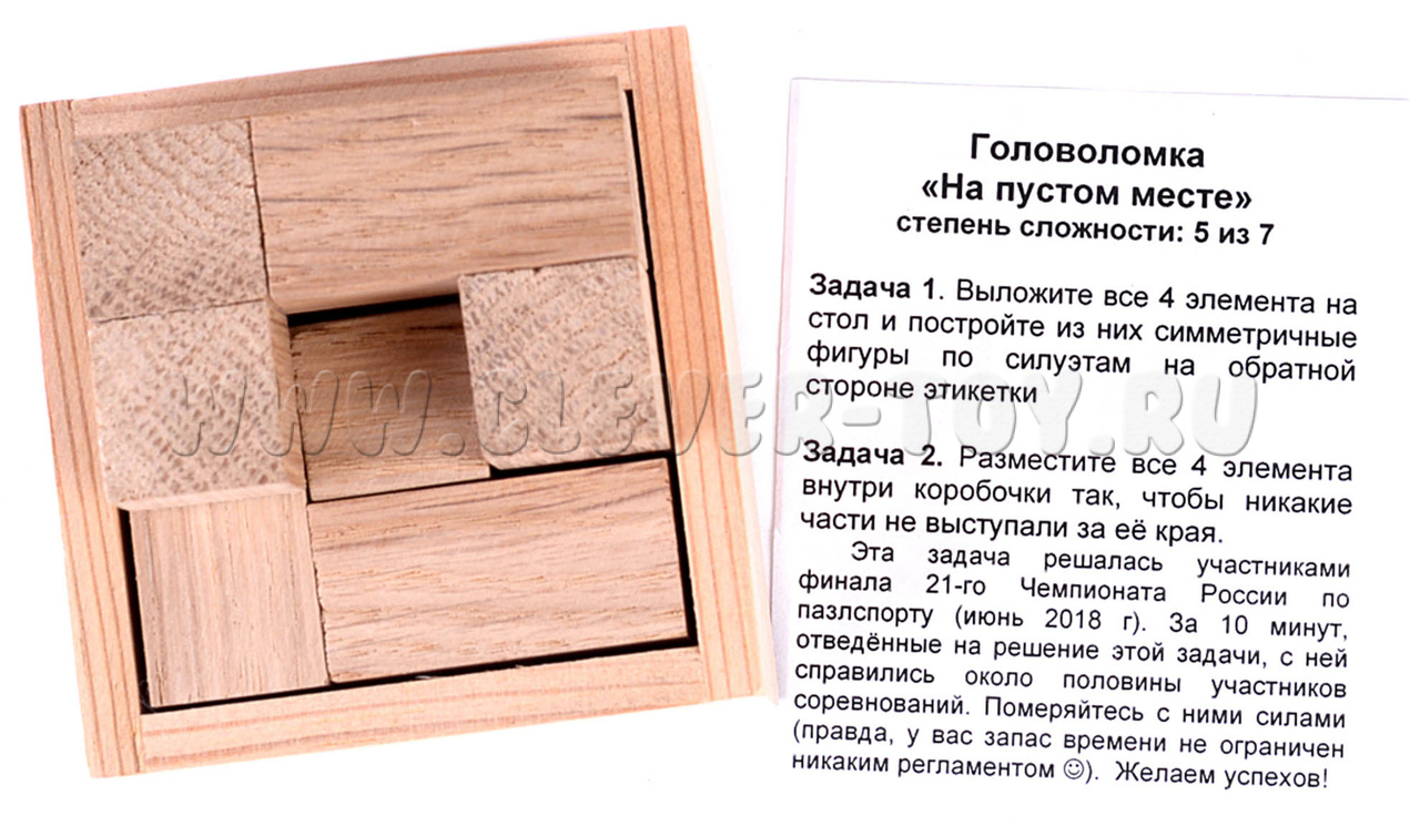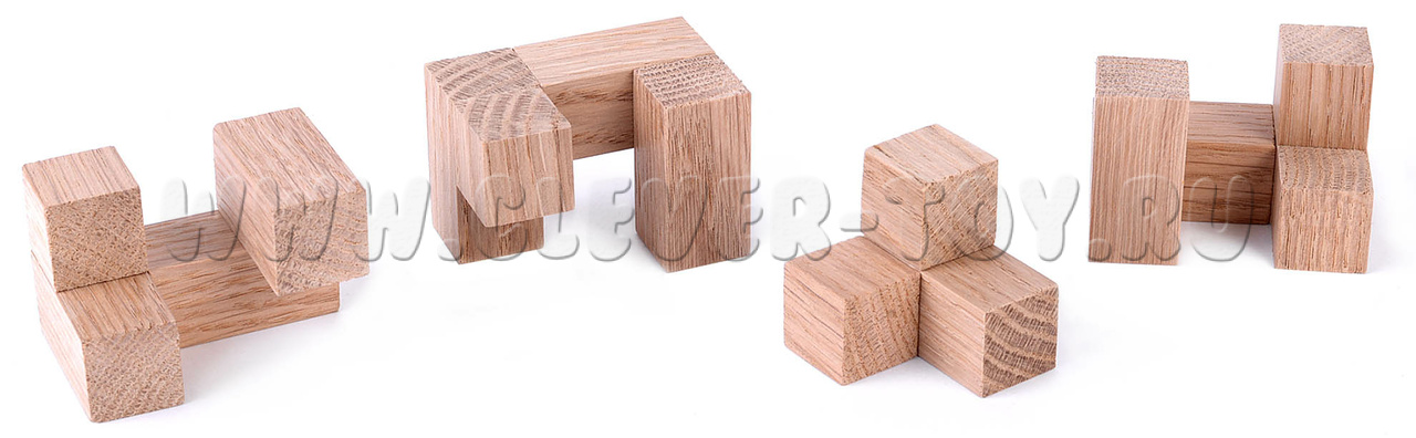 В таинственной коробке запрятано 4 деревянные фигуры. Разложите их перед собой на столе и приступайте к решению головоломки