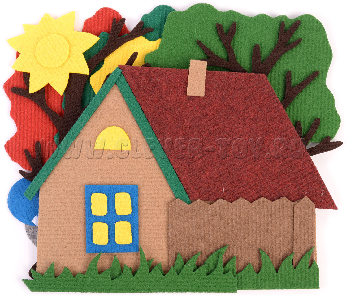 С помощью ярких и красивых ковролиновых деталей на многоразовых липучках домики превращаются в осенний, зимний, весенний и летний. Набор рекомендован опытными педагогами дошкольного образования для того, чтобы в игровой форме познакомить ребёнка с разными временами года.