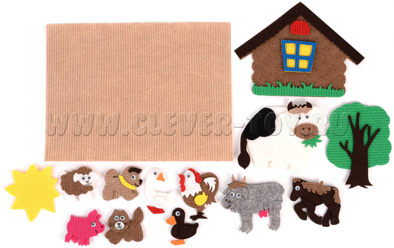 • 10 фигурок животных - собака, лошадь, петух, гусь, утка, свинья, коза, овца, корова, кот,