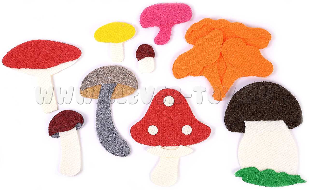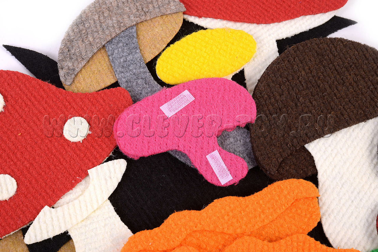 • грибы разных видов – 7 видов, включая несъедобный мухомор, съедобные грибы: лисички, белый гриб, подберёзовик, опята, синявка.