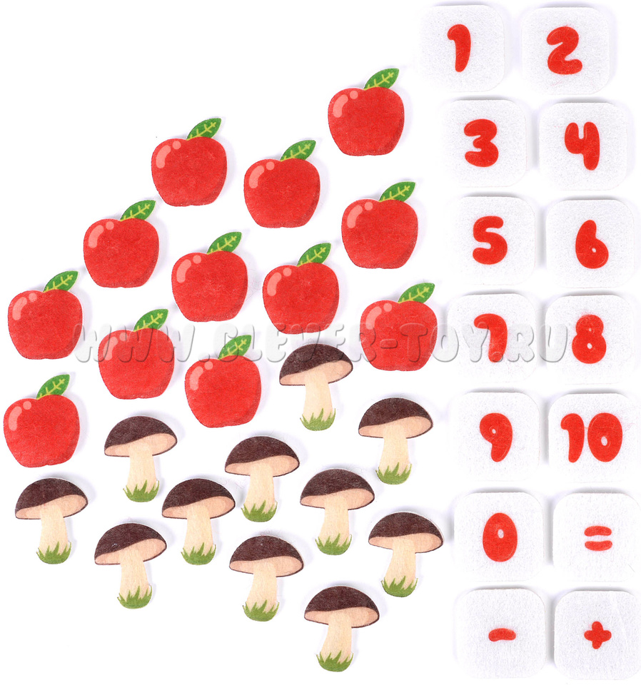 • Грибы и яблоки (по 10 шт.);
