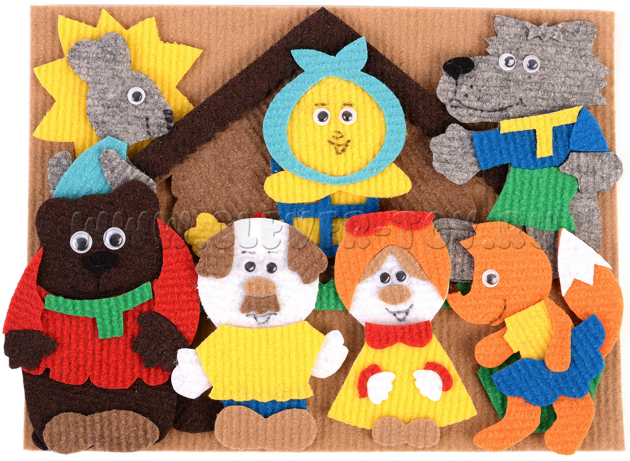Сюжетный ковролиновый набор по мотивам одной из самых любимых сказок «Колобок» в мини-версии.