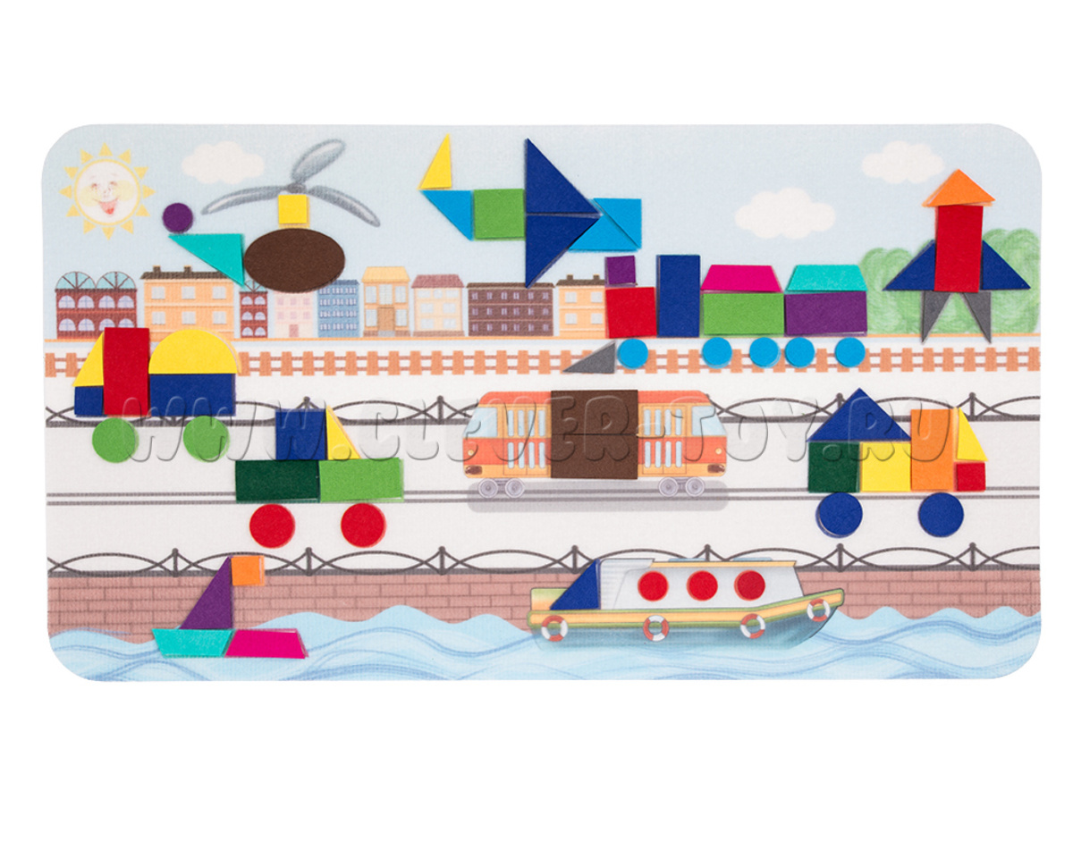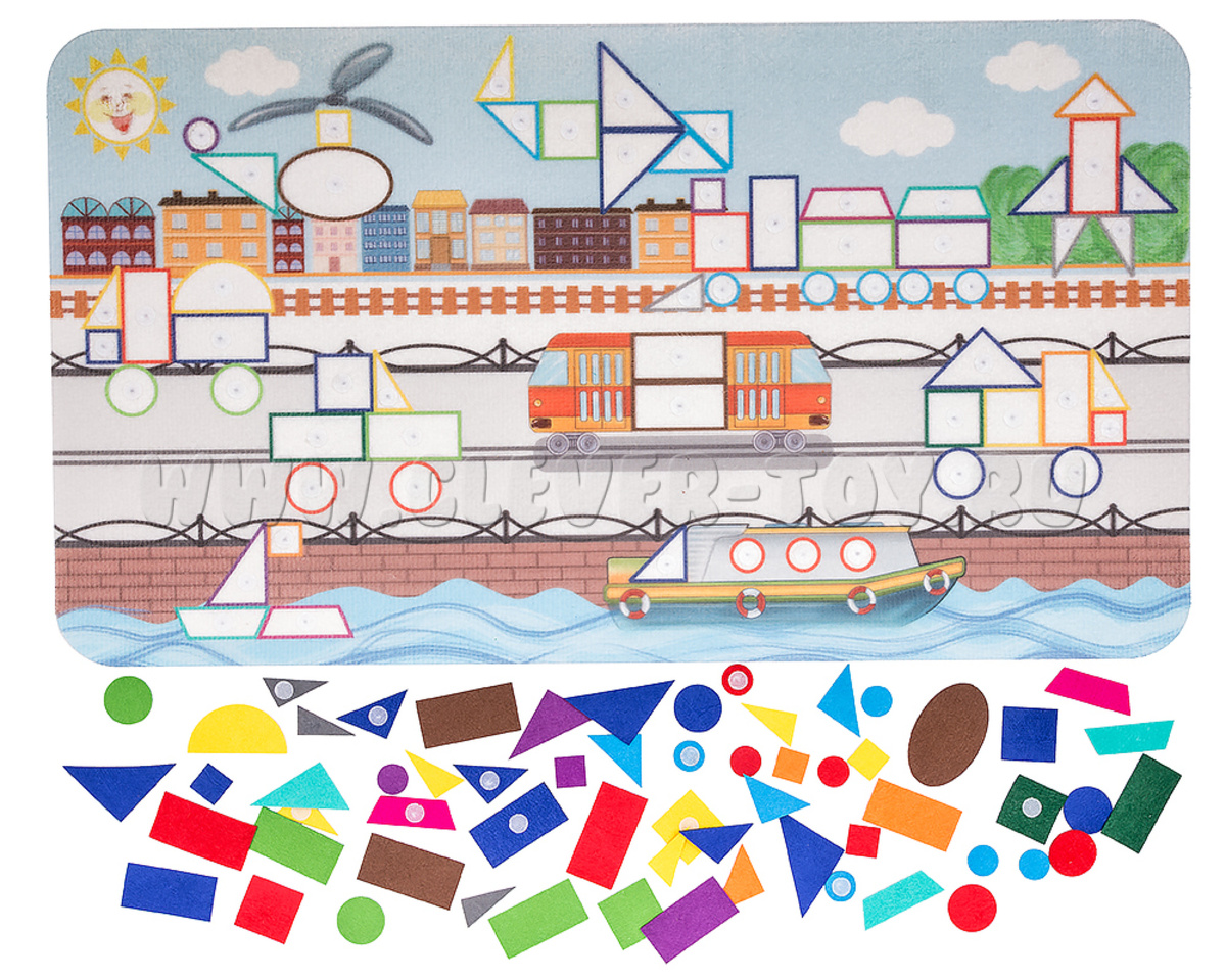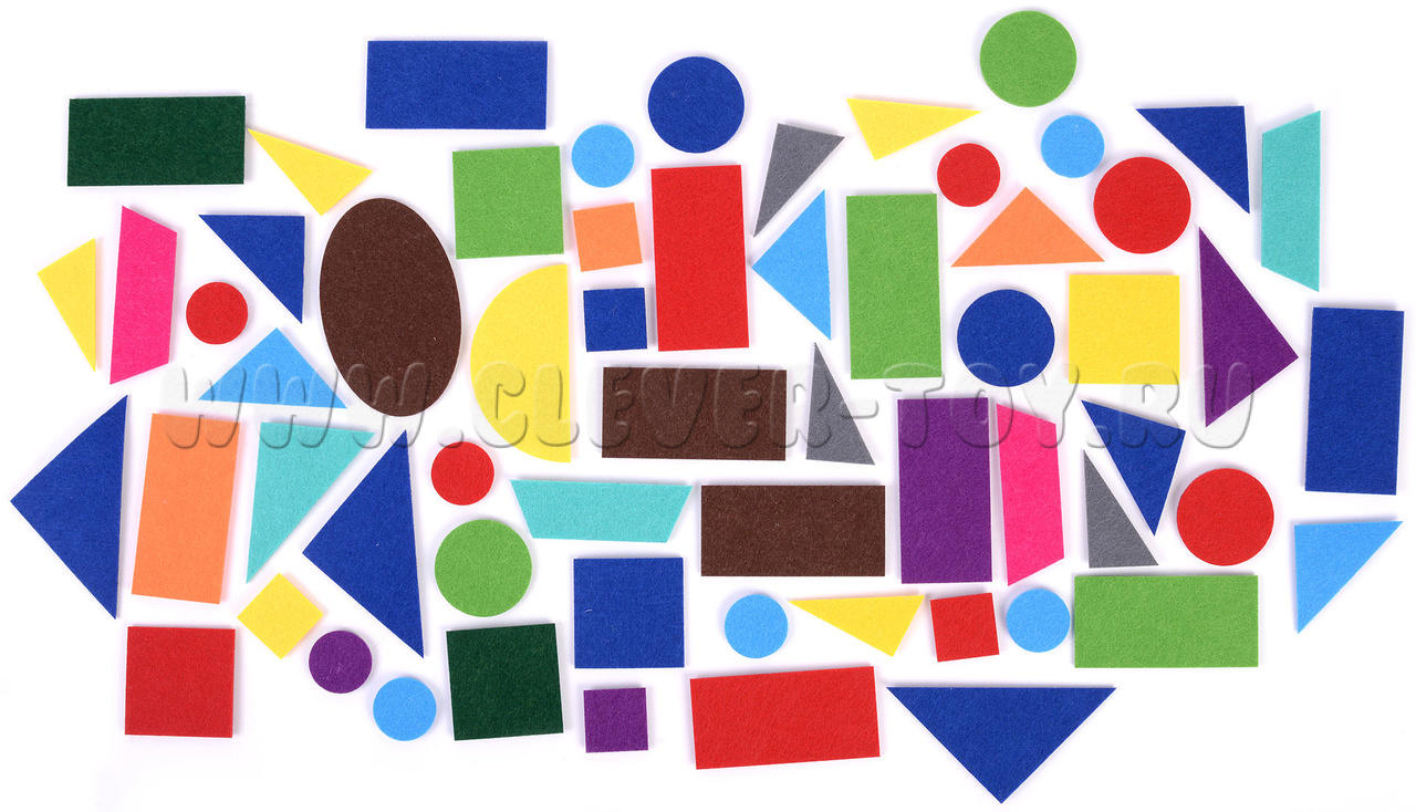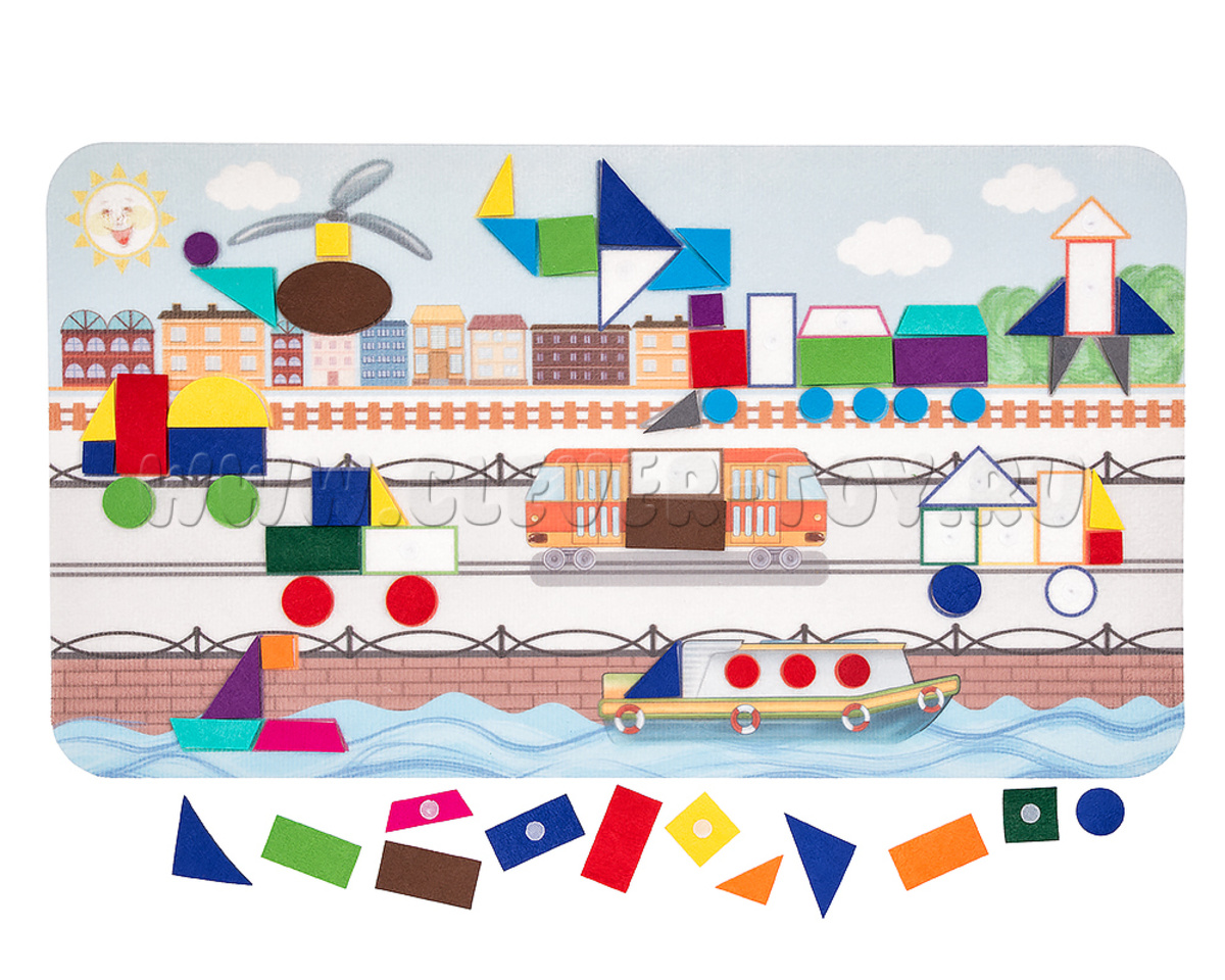 Состав набора: основа из фетра 1шт., геометрические фигуры на липучках  61 шт.