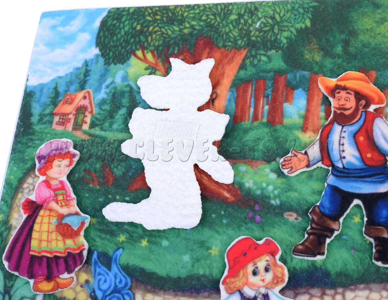 Игровое пособие выполнено из фетра и сделано в виде кукольного театра. Дети с удовольствием займутся постановкой собственной сказки. Яркие и красочные фигурки легко прилипают к игровому полю, не рвутся и не мнутся. Часть деталей выполнены вручную и имеет полное сходство с оригинальными нарисованными персонажами.