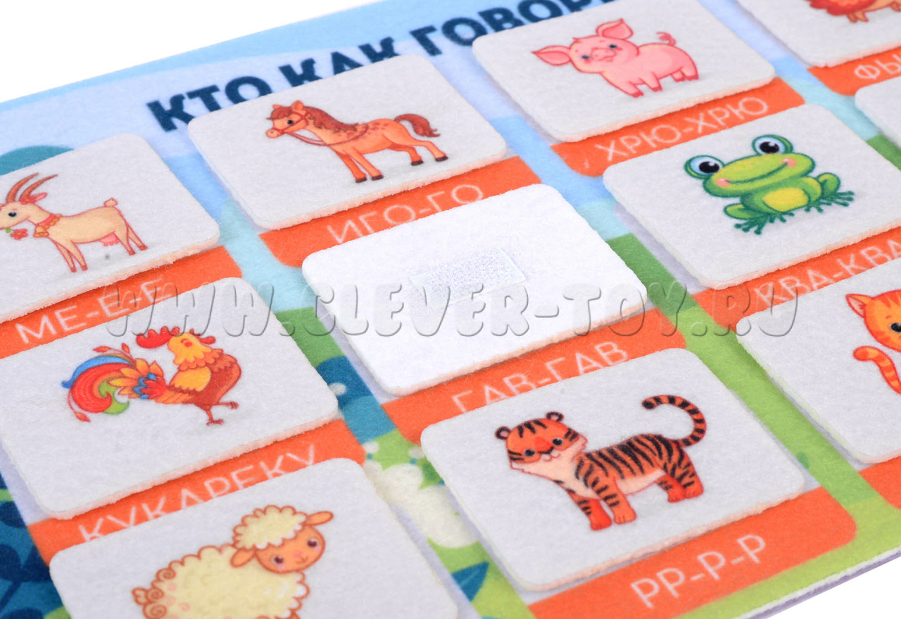 Кто рычит, кто мычит и мяукает? С помощью мягкой аппликации «Кто как говорит» ребенок в игровой форме узнает, какие звуки издают самые разные животные. Регулярно занимаясь с дидактическим пособием, малыш расширит свой кругозор, узнает больше об окружающем мире, а также разовьет свои пальчики и мышление.
