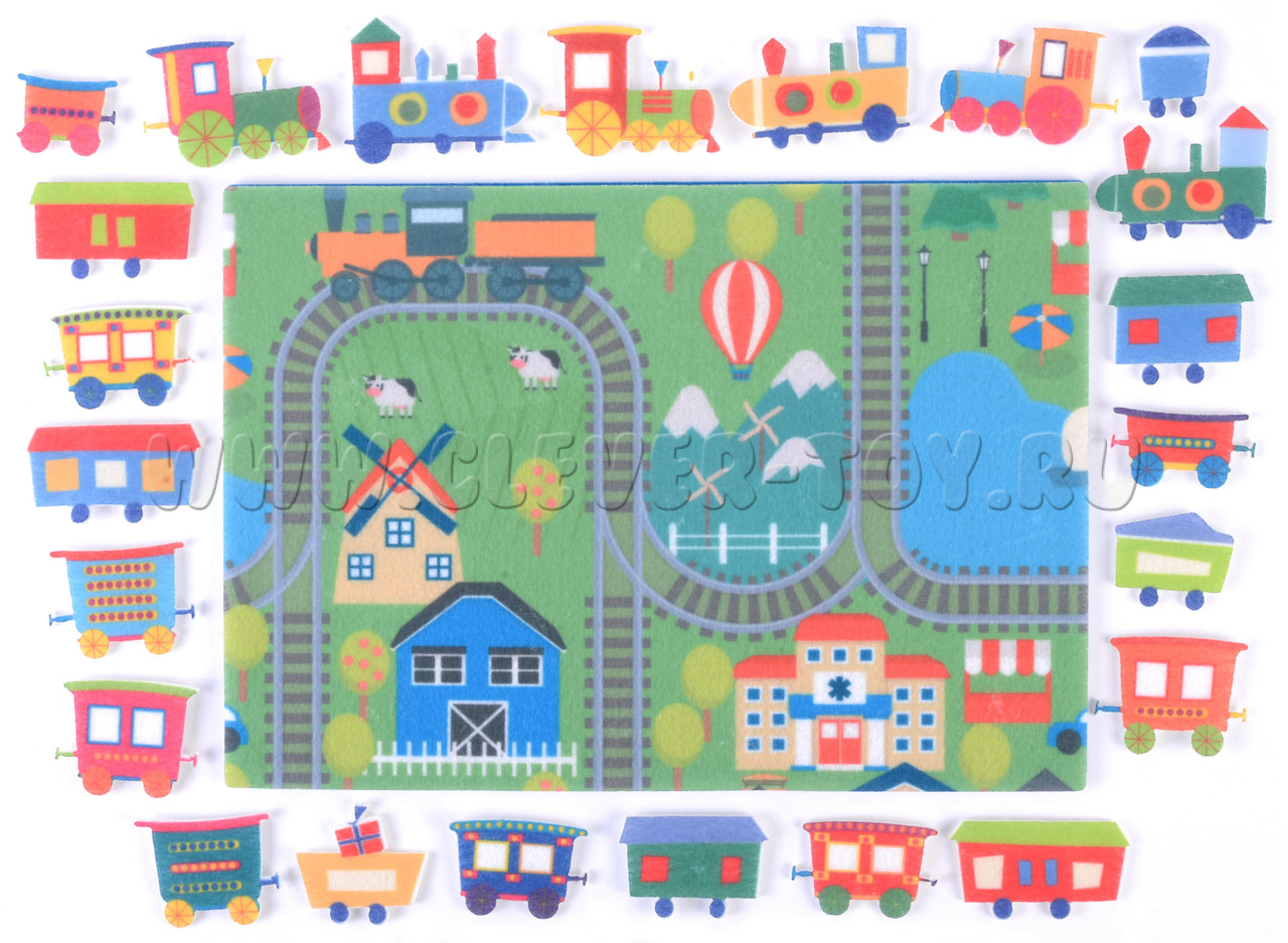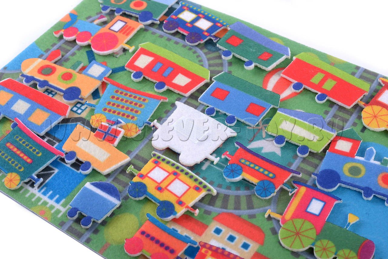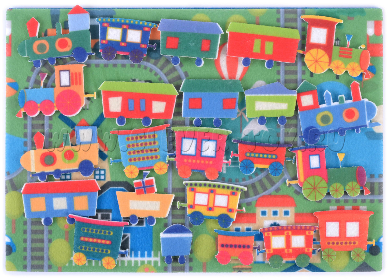 • 23 разноцветных вагончика и локомотивов из фетра;