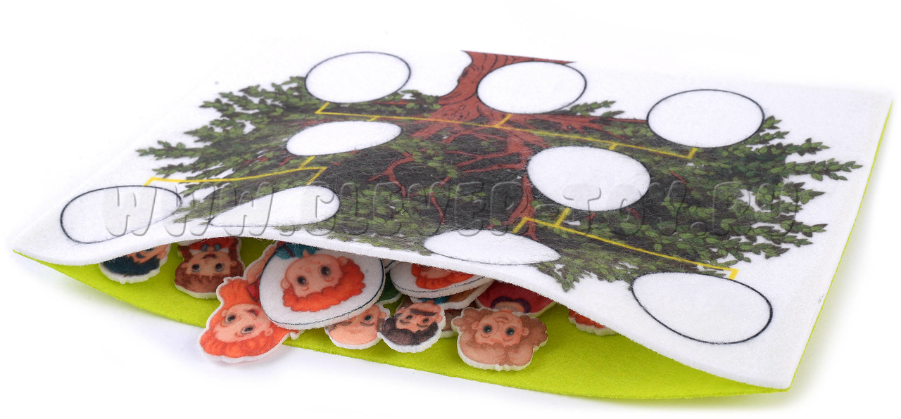 • тематическое игровое поле в виде родового дерева (выполнено в форме конверта, в котором удобно хранить игровые элементы);