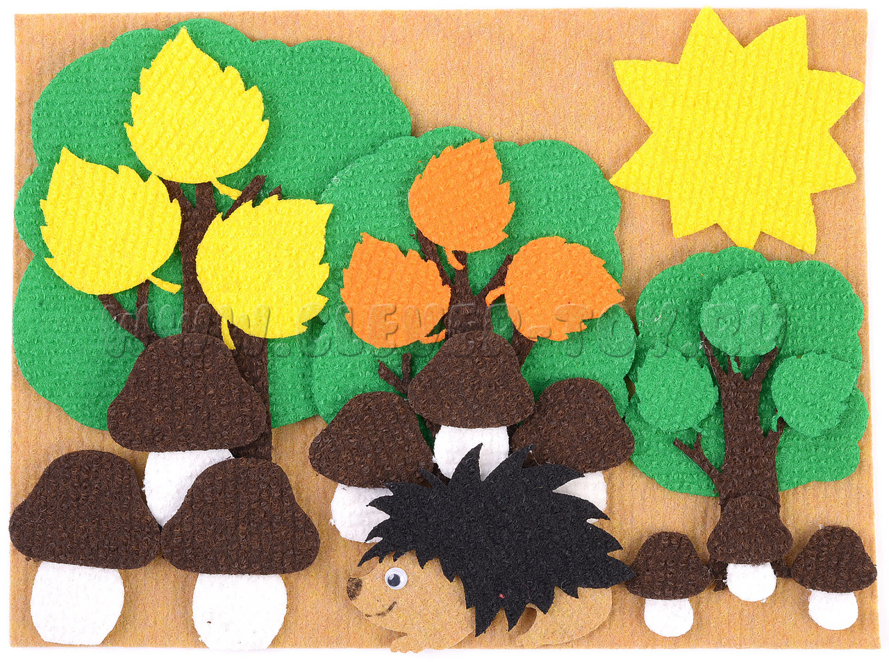 • 9 разноцветных листочков – жёлтые, зелёные и оранжевые;