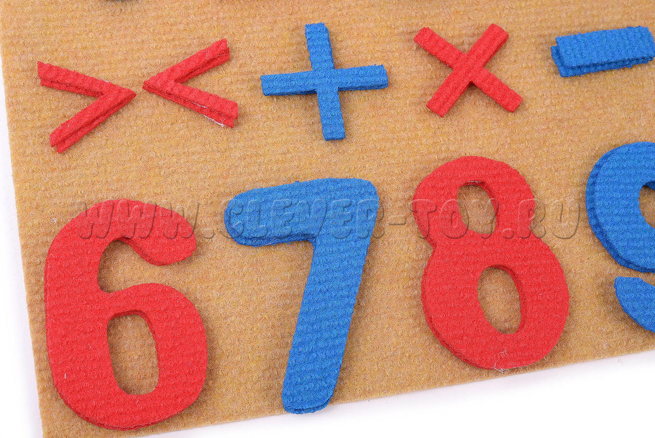 • математические знаки – 14 штук – плюсы, минусы, знак равенства, знаки «больше», «меньше»,