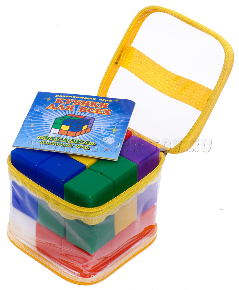 «Кубики для всех Загадка» - это логическая игра из серии кубиков от ООО «Корвет». В серию также входят кубик № 1 «Уголки», кубик № 2 «Собирайка», кубик № 3 «Эврика» и кубик № 4 «Фантазия». Самые простые варианты представлены в кубиках 1 и 2, усложнение – в кубиках 3,4,5.