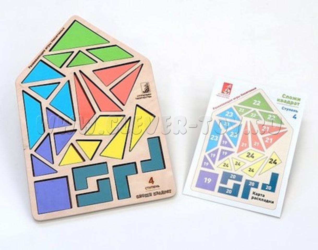 Данный набор это четвертая ступень в развивающей серии игр от Никитиных "Сложи квадрат", предназначен для детей от 4 до 7 лет. Желательно использовать после освоения первой и второй ступени и третей ступеней. В следующих наборах (ступенях) игра будет усложняться.