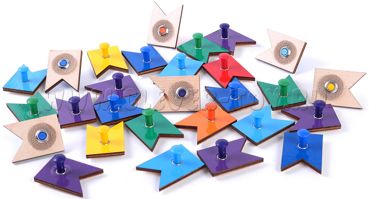 - флажки семи цветов радуги – красный 1 шт., оранжевый 2 шт., жёлтый 3 шт., зелёный 4 шт., голубой 5 шт., синий 6 шт., фиолетовый 7 шт.;