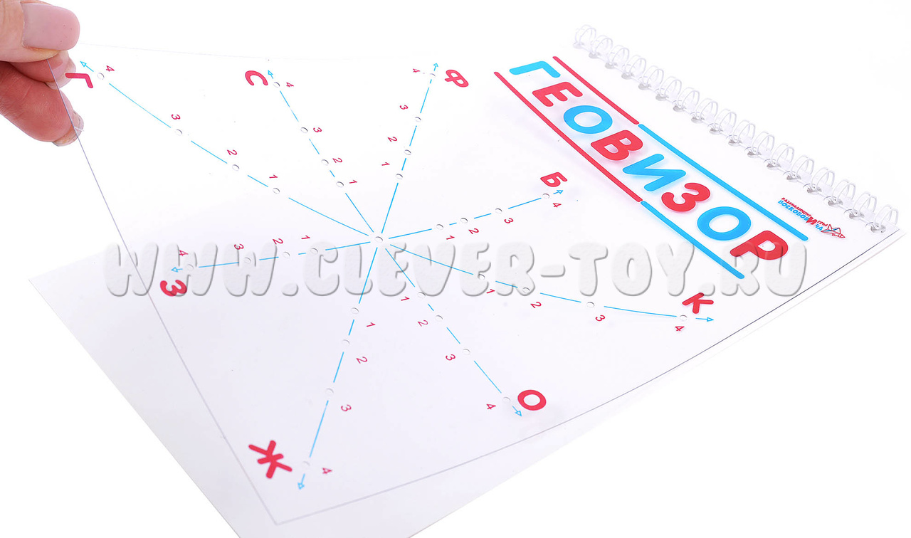 • «Геовизор» - альбом с прозрачным экраном, размеченным координатной сеткой с точками (отверстия экрана) и ламинированной подложкой;