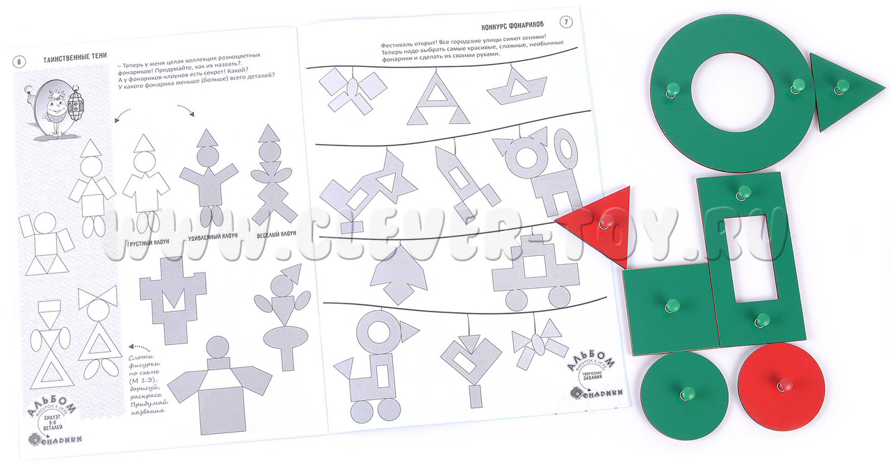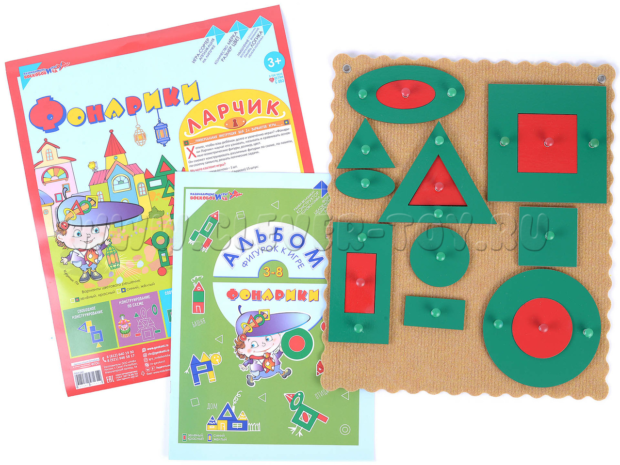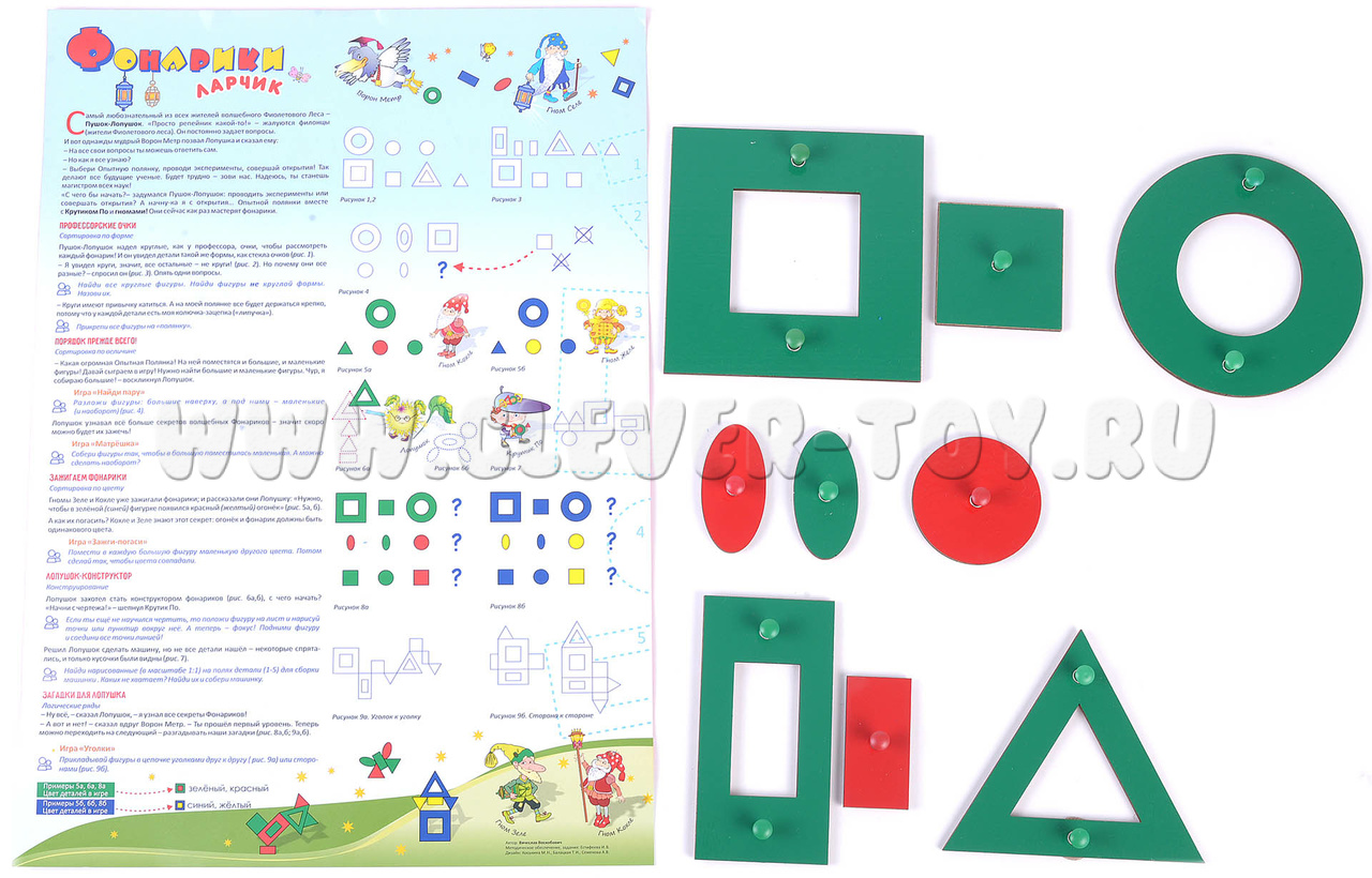 Игровое пособие из серии «Приложения к коврографу Ларчик». Герой игры – Магнолик. Ему подарили фонарики разной формы – круглые, квадратные, овальные, прямоугольные, треугольные. Теперь Магнолик предлагает малышу поиграть с этими волшебными фонариками.