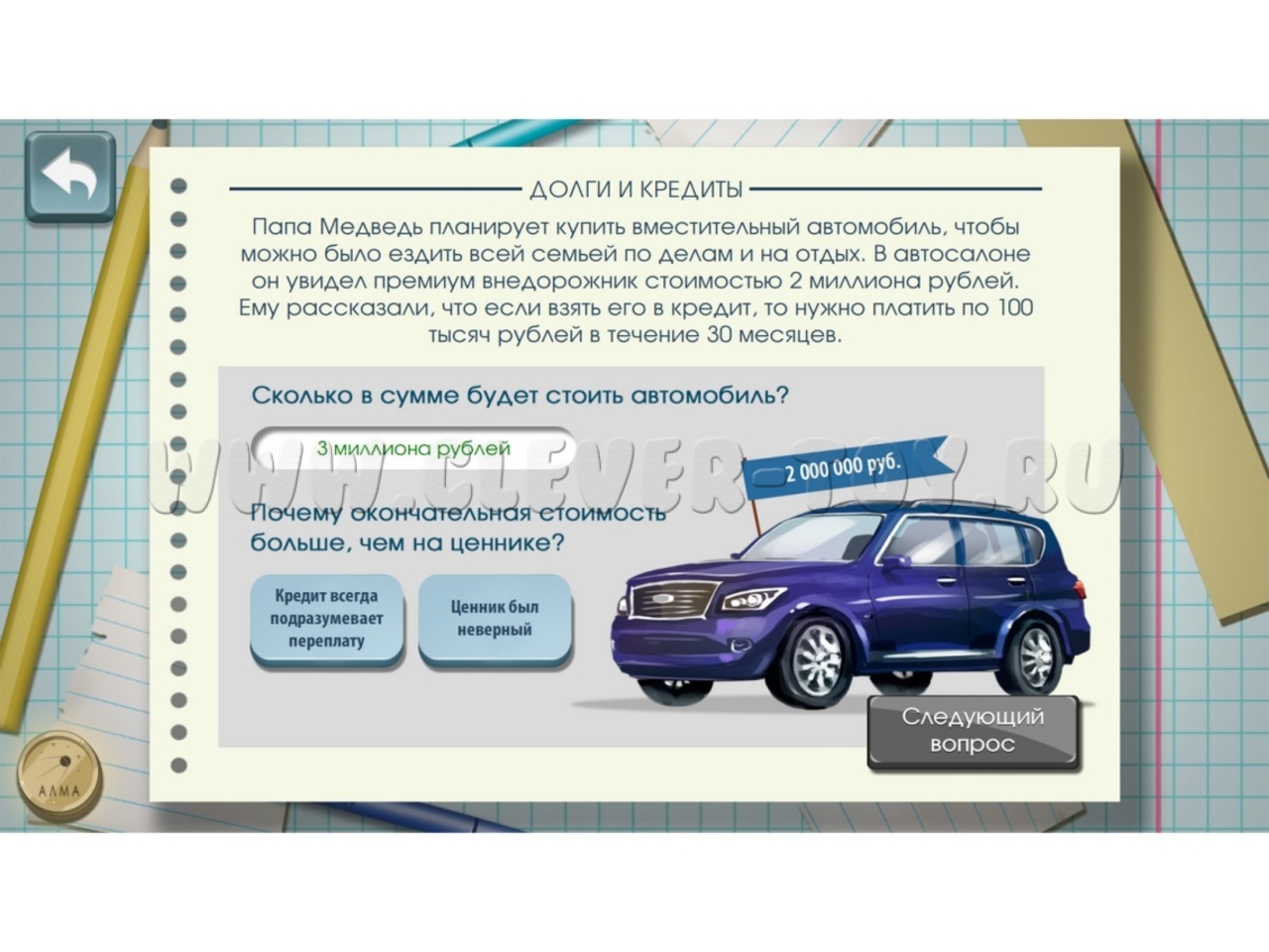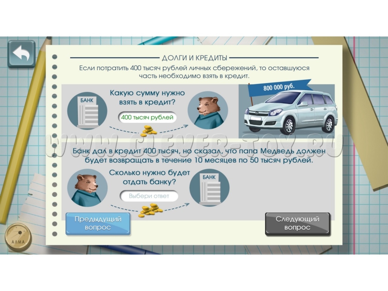Новейшее программное обеспечение из более чем 100 аналитических и творческих задач на тему финансовой грамотности, разделенных на 4 блока: