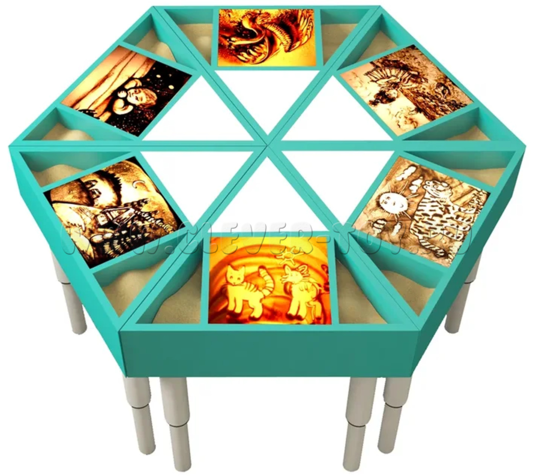 • 6 столов (мест) для рисования песком (в каждом по 3 отсека для песка, формочек и игрушек)