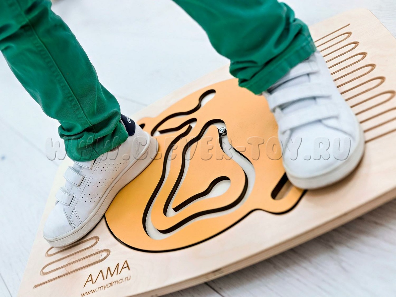 Это игровой нейротренажёр для улучшения координации, развития внимания и логического мышления. Он состоит из двух балансиров для ног и набора балансиров для рук, которые вставляются в специальное углубление на ножном балансире.
