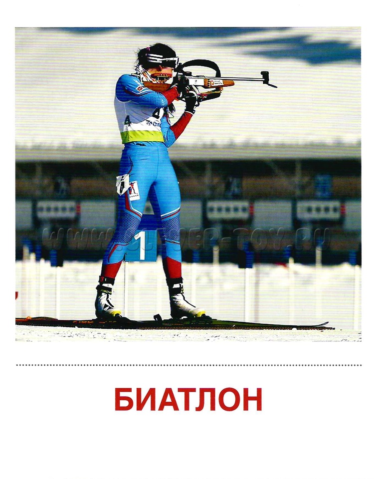На лицевой стороне каждой карточки дается цветное изображение зимнего вида спорта, на обратной - подробное описание, из которого дети узнают много интересного и даже поучительного! Для лучшего закрепления материала представлены оригинальные