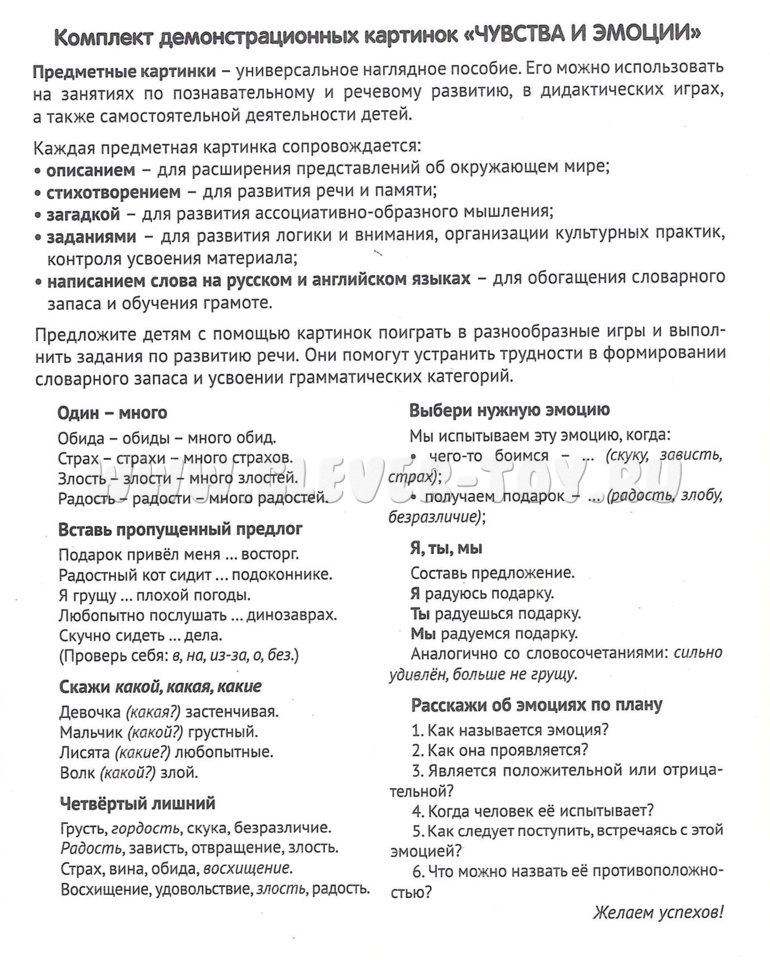 Не упустите возможность сделать процесс обучения интересным и увлекательным для вашего ребёнка! Закажите картонные демонстрационные карточки "Чувства и Эмоции" прямо сейчас и наслаждайтесь успехами вашего малыша!
