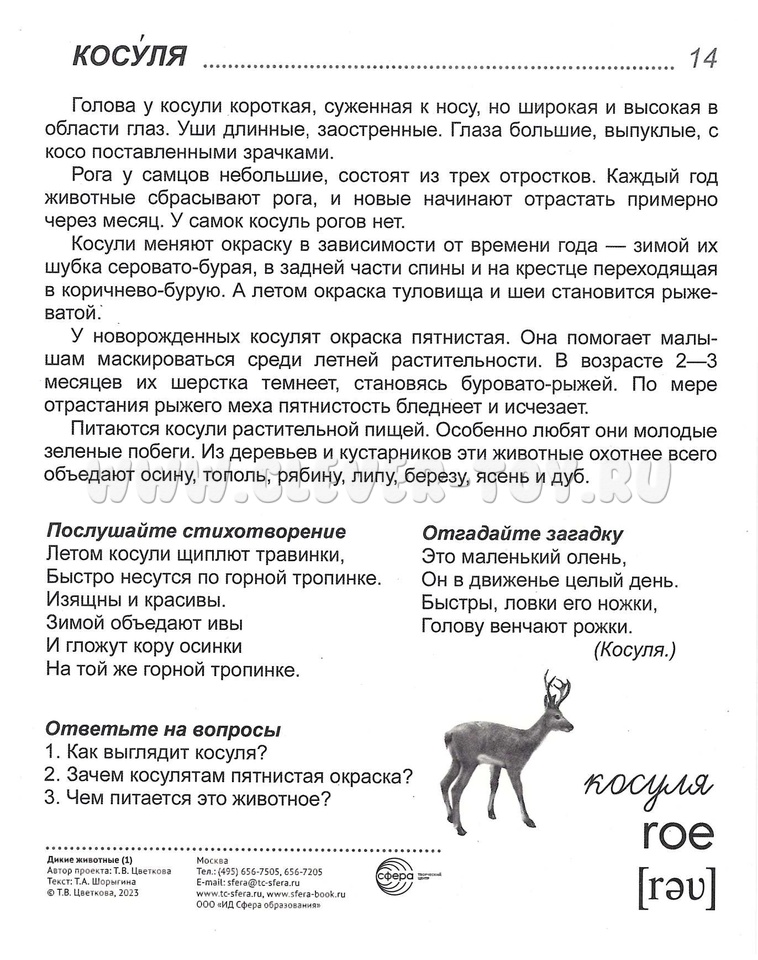 16 демонстрационных картинок размером 18*22 см для познавательного и речевого развития. На обороте каждой предметной картинки - описание, стихотворение, загадка, вопросы для ребёнка, название на русском и английском языках.