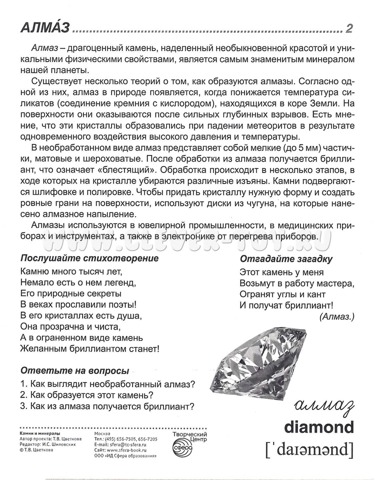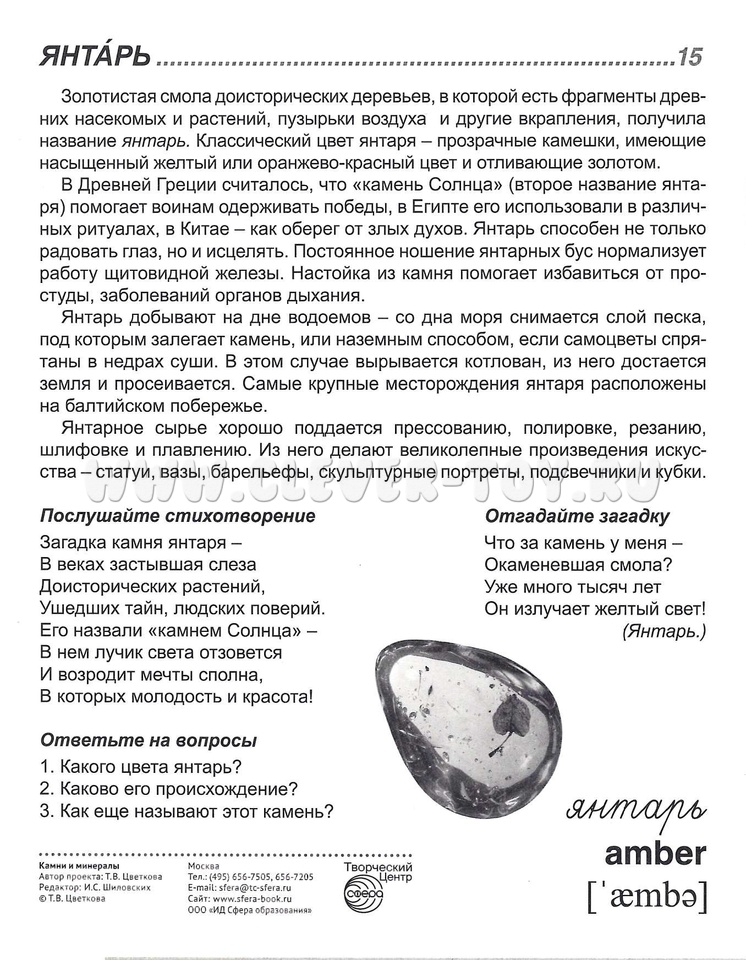 На лицевой стороне каждой карточки дается цветное изображение камня в необработанном и обработанном видах, на обратной - подробное описание, из которого дети узнают много интересного и даже поучительного!