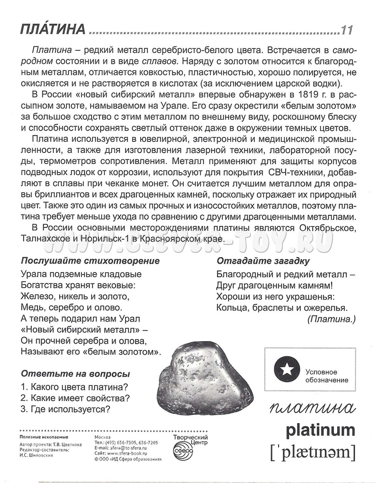 На лицевой стороне каждой карточки дается цветное изображение полезного ископаемого и его условное обозначение, на обратной - подробное описание, из которого дети узнают, какими бывают полезные ископаемые, как их добывают, в какой сфере жизнедеятельности они используются.