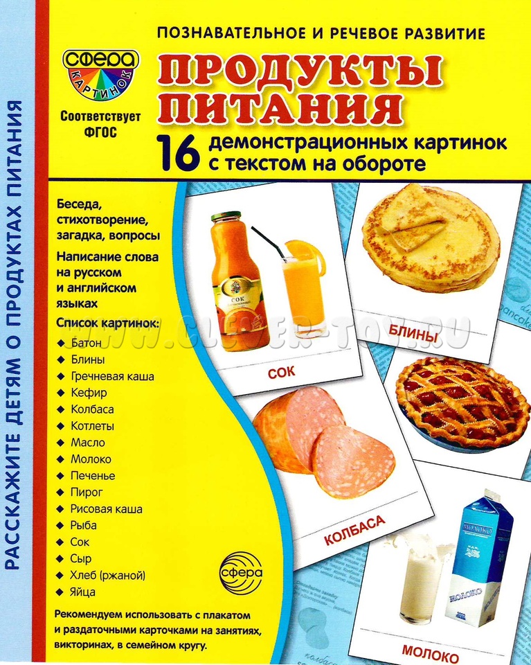 Откройте мир здорового питания вместе с нашими демонстрационными карточками! На каждой карточке вы найдёте информацию о продуктах, стихотворение, загадку и впоросы. В процессе бесед обсудите, какие продукты нравятся вашему ребёнку, а какие он ест неохотно.