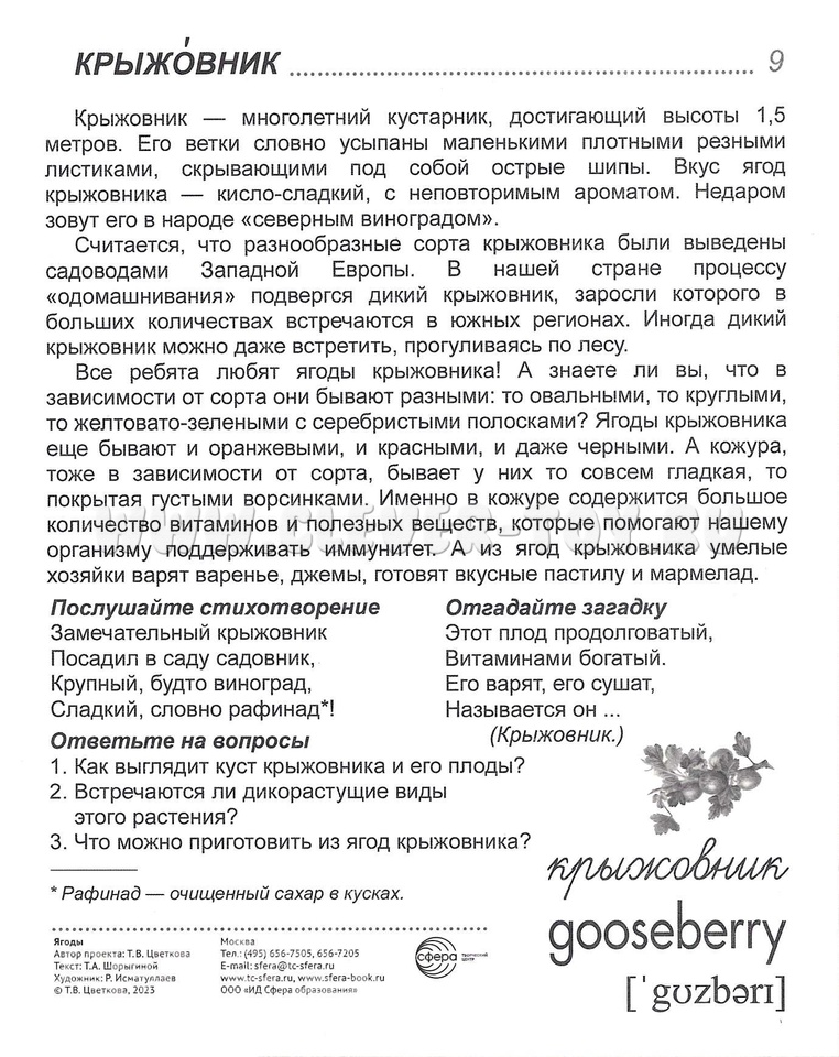Для лучшего закрепления материала представлены оригинальные стихотворения и рифмованные загадки по теме, а также вопросы, на которые ребенок ответит после изучения материала или беседы со взрослым.