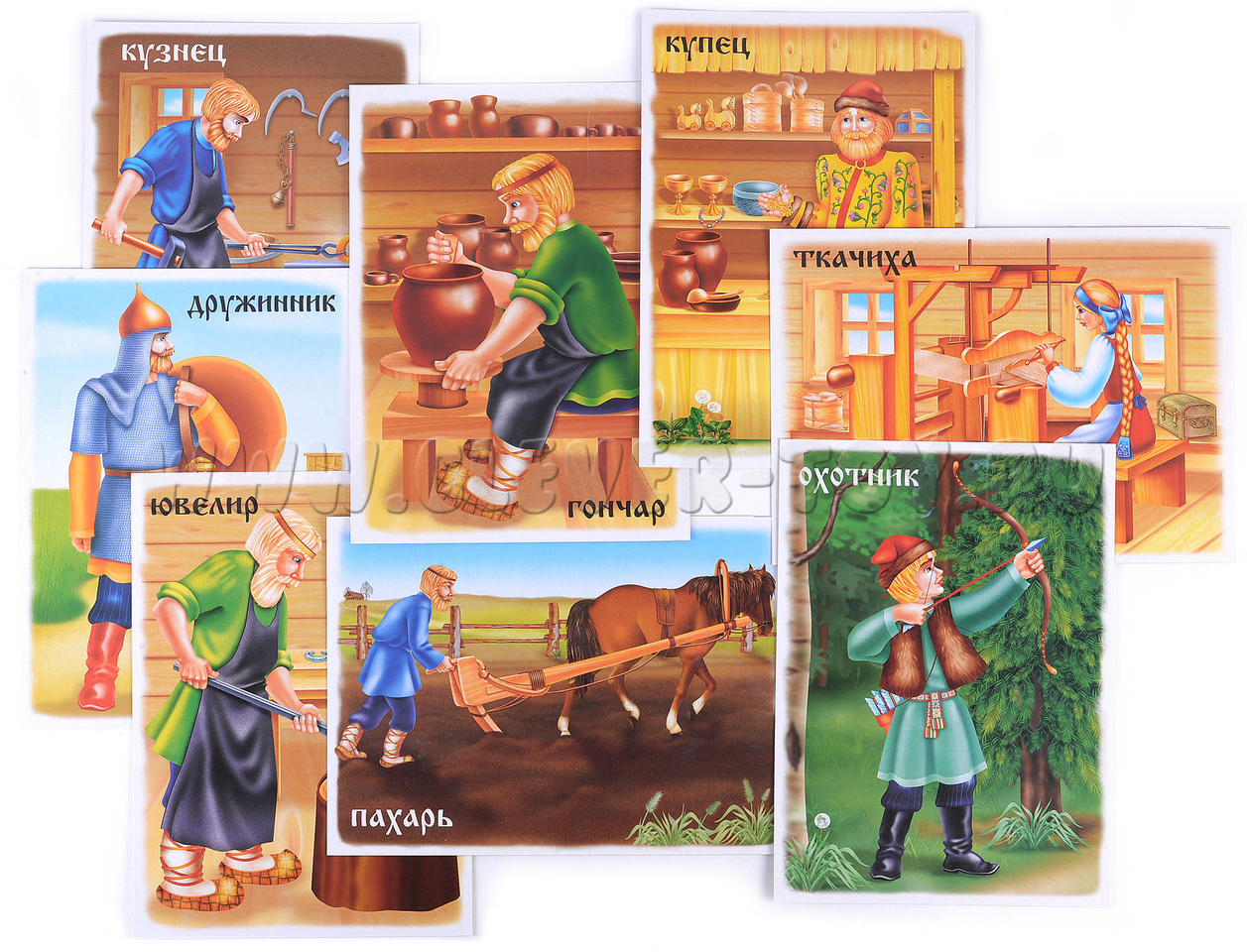 Предлагаем демонстрационный материал, знакомящий детей с историей Древней Руси, с образом жизни славян, их бытом и семейным укладом, ремеслами. Дети узнают все о родственных связях, кто, кому и кем приходится в семье. Изображения очень реалистичны, передают всю суть, знакомя детей с историей.