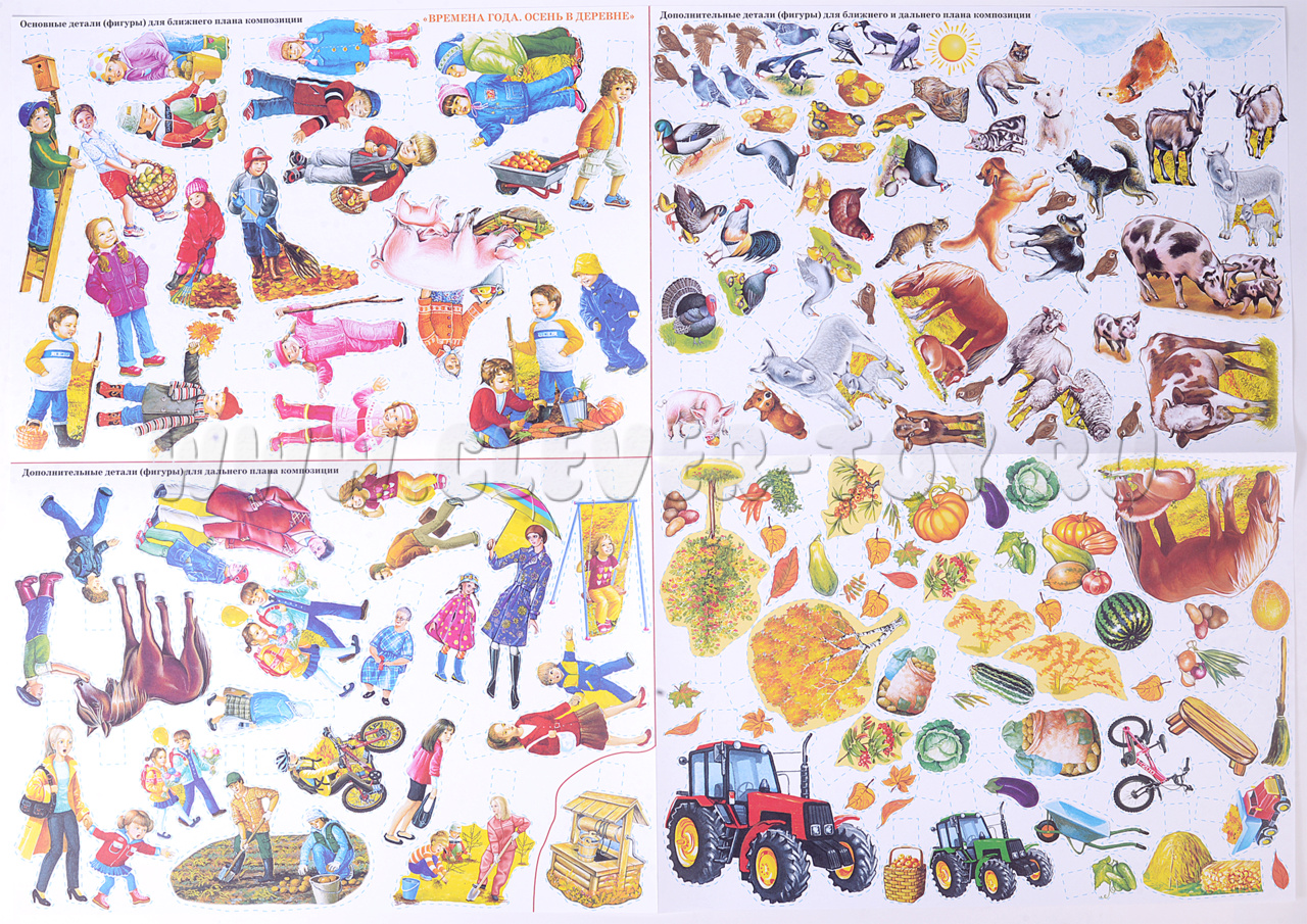 • плакат (А1) с изображением основных и дополнительных фигурок (100-150 штук) для вырезания и наклеивания на сюжетную картину;