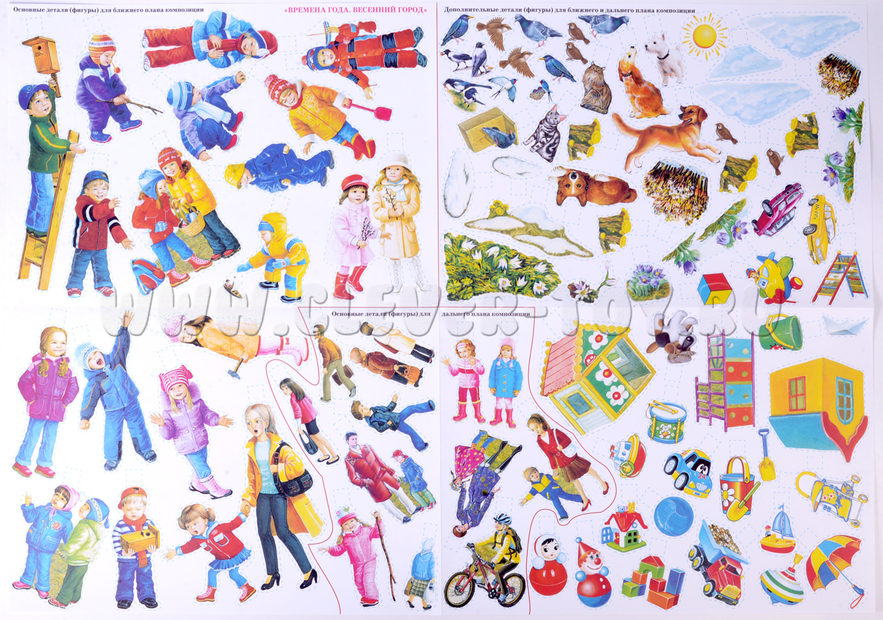 • плакат (А1) с изображением основных и дополнительных фигурок (100-150 штук) для вырезания и наклеивания на сюжетную картину;