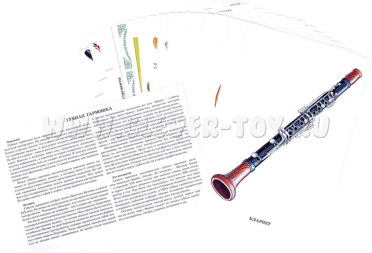 • 11 музыкальных инструментов (кларнет, флейта, саксофон, труба, тромбон, валторна, фагот, гобой, дудка, альпийский рог, губная гармошка);