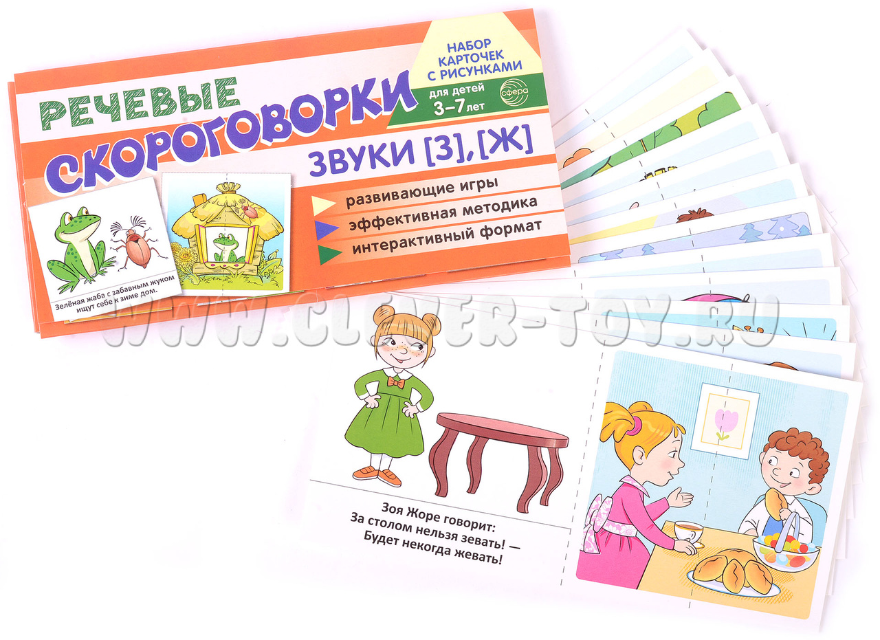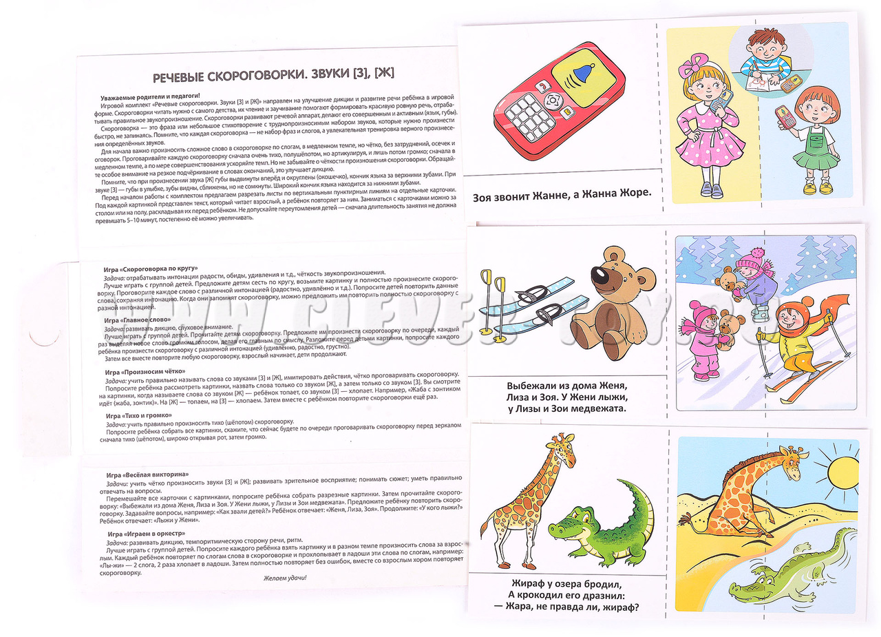 Набор карточек с рисунками. Речевые скороговорки. Звуки [З], [Ж]. Для детей 3-7 лет