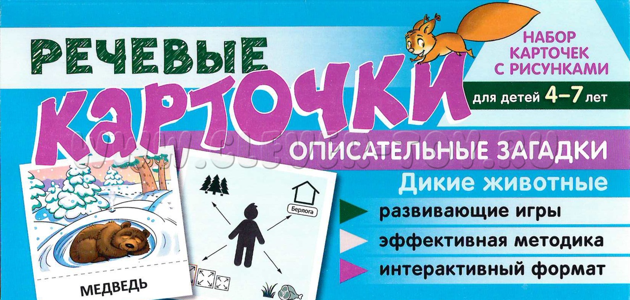 Набор карточек с рисунками. Речевые карточки. Описательные загадки. Дикие животные