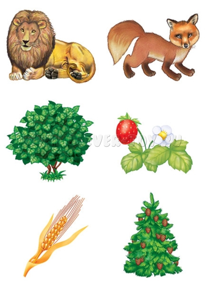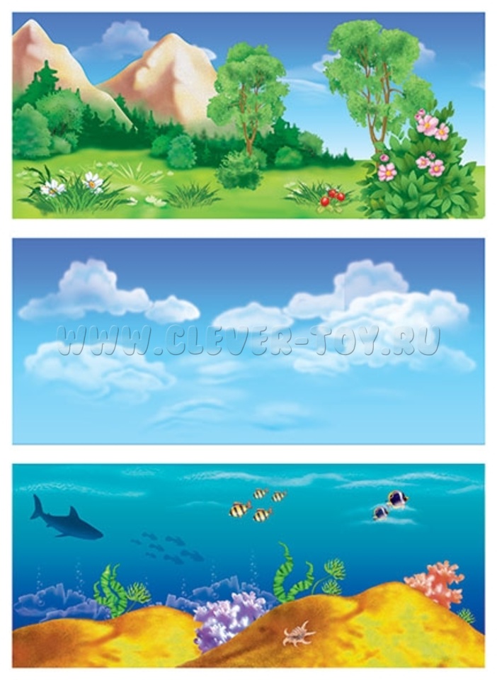 - Предложите ребенку (или группе детей) разложить карточки с растениями и животными по группам в зависимости от среды обитания существ, попросите их рассказать, кто и где живет;