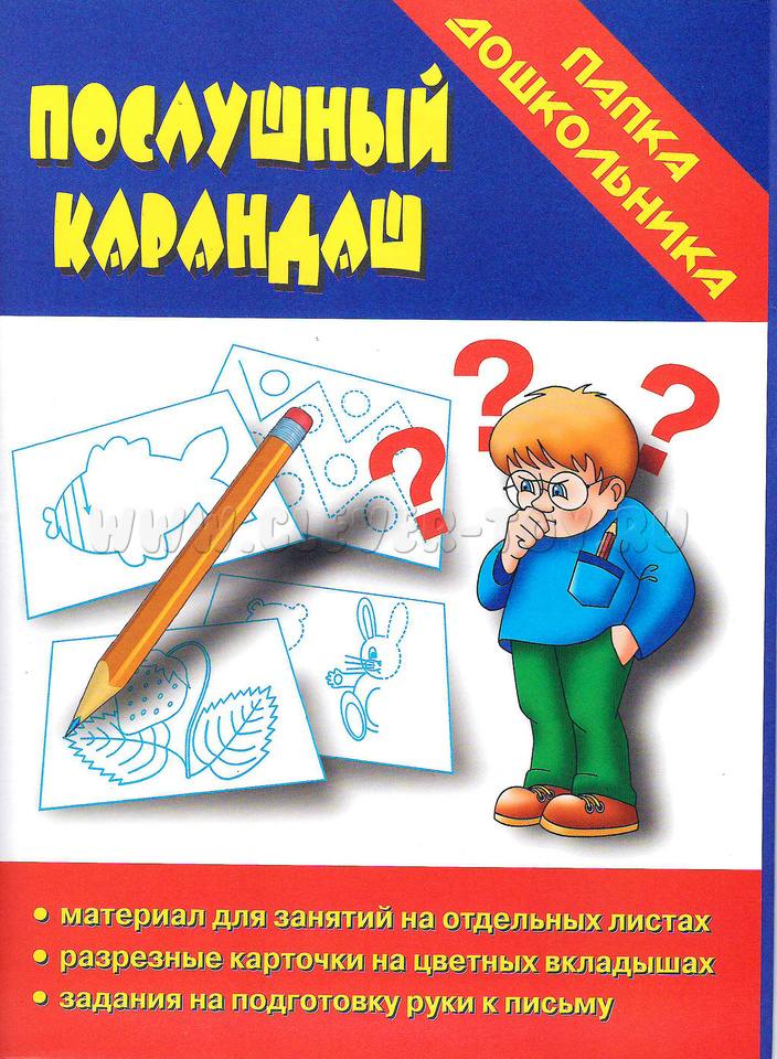 Тетрадь с заданиями на отдельных листах, разрезные карточки на цветных вкладышах, задания на подготовку руки к письму.