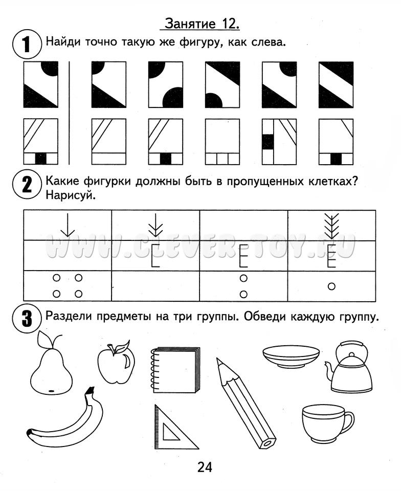 Первая часть из набора для успешной подготовки к школе старших дошкольников 5-6 лет. Тетрадь подразделена на 15 занятий, каждое из которых состоит из 6 заданий.