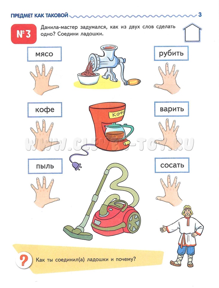 Тетрадь содержит игровые упражнения и задания, направленные на познавательное развитие детей 6-7 лет. В процессе выполнения заданий дети размышляют, уточняют представления о предметном мире, обогащают сенсорный опыт и осознают, что все предметы созданы человеком и их назначение определяется человеческой мыслью.