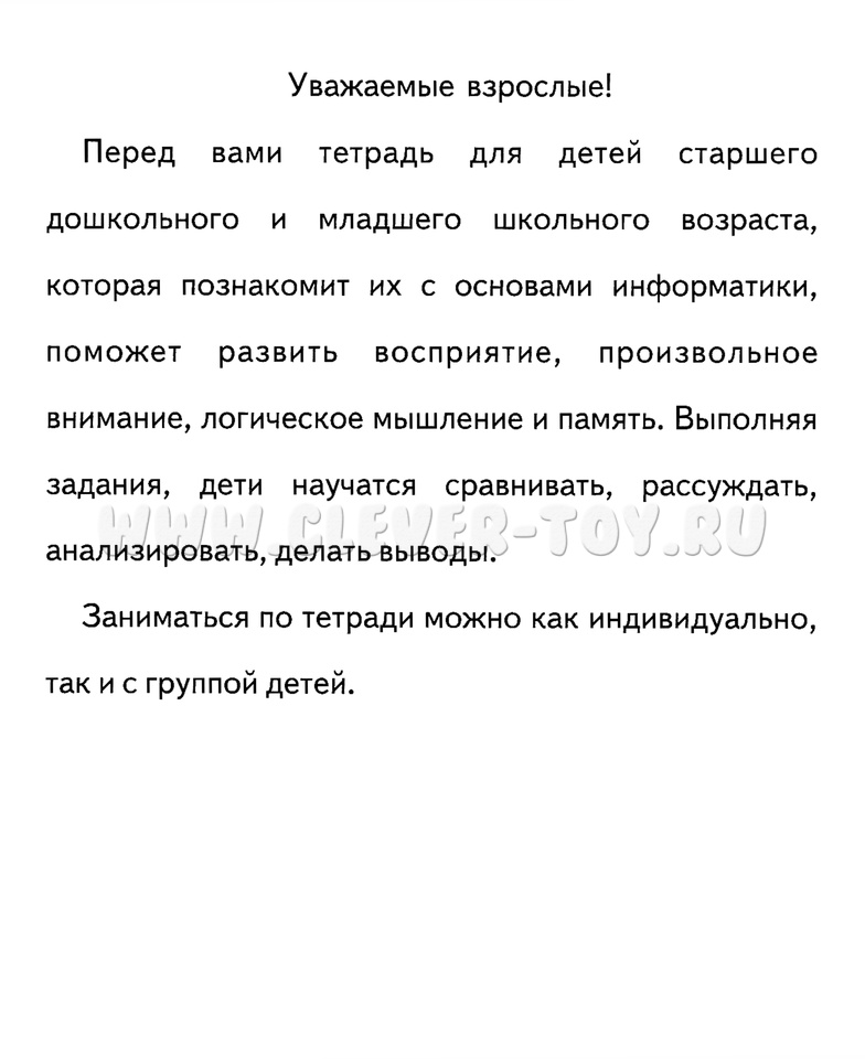 Знакомимся с основами информатики, развиваем восприятие, внимание, произвольное внимание, усидчивость, логическое мышление.