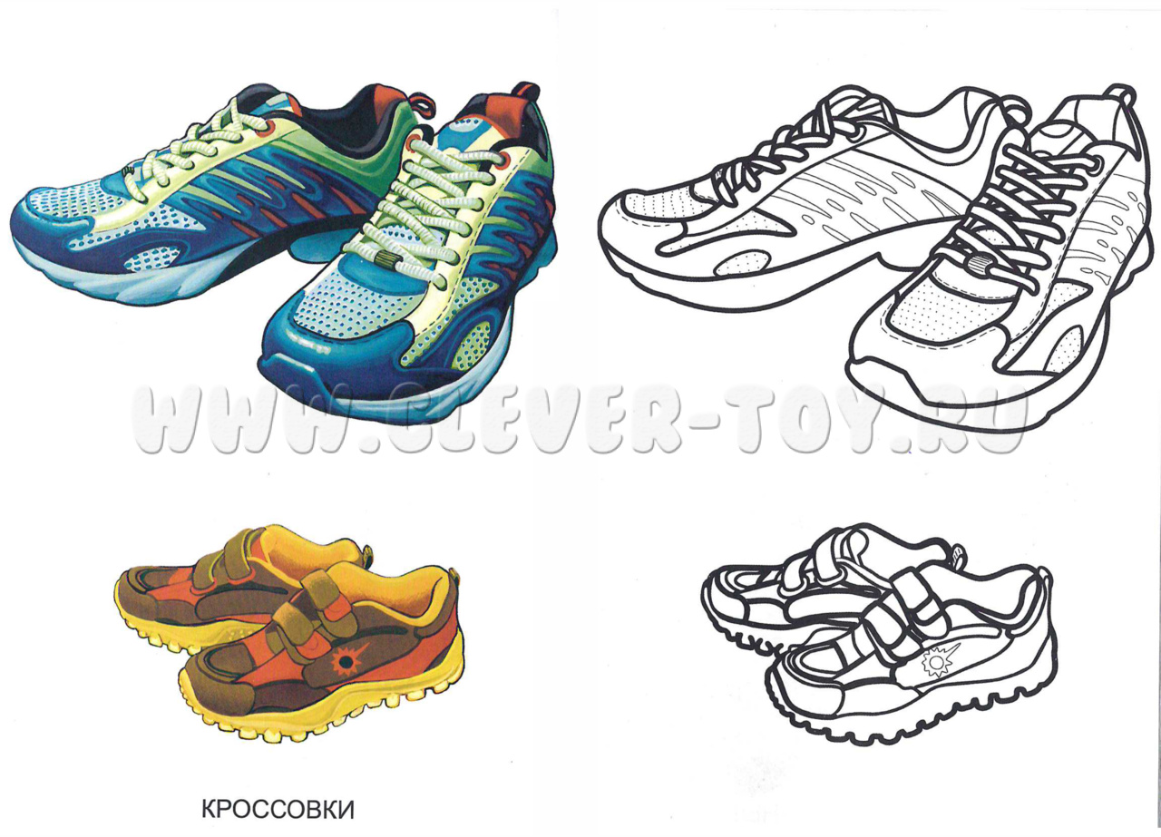 Раскраска "Обувь предназначена для детей дошкольного и младшего школьного возраста. Она способствует: