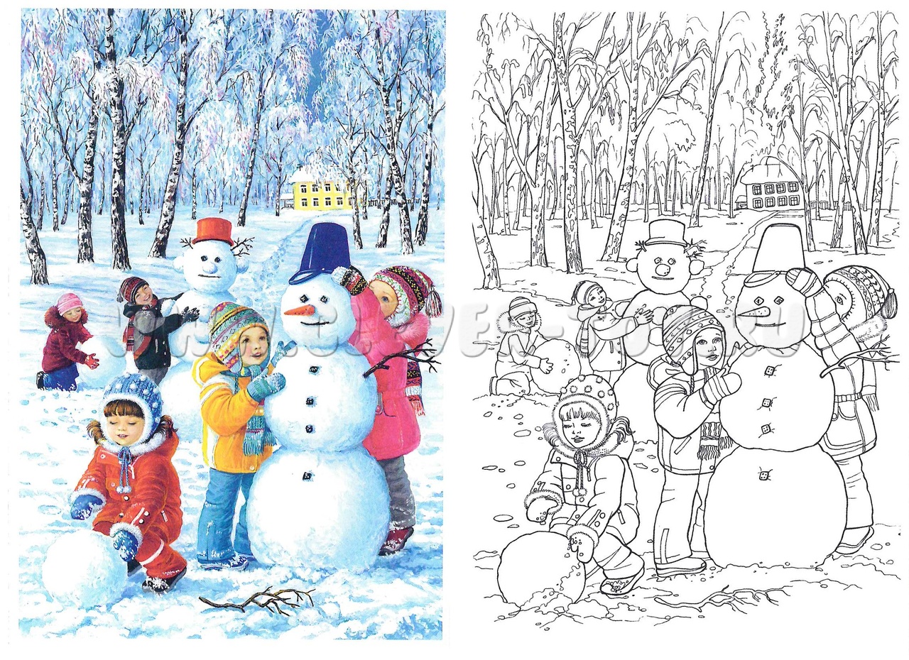 Раскраска "Времена года. Зима" предназначена для детей дошкольного и младшего школьного возраста. Она способствует: