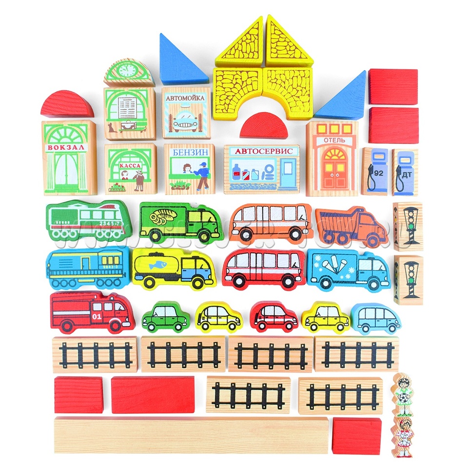 Конструктор развивает мышление и сообразительность, учит сравнивать и анализировать, фантазировать и сочинять. С помощью ярких фигурок из дерева можно легко разыграть путешествие по железной дороге, поездку по городу на автобусе или пешую прогулку.