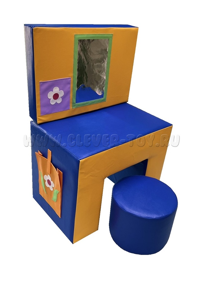Комплектация: стол: 60*40*60 – 1шт. зеркало: 60*10*40 – 1 шт. пуф: 30*25 – 1 шт. жилет - 1 шт. накидка - 1 шт.