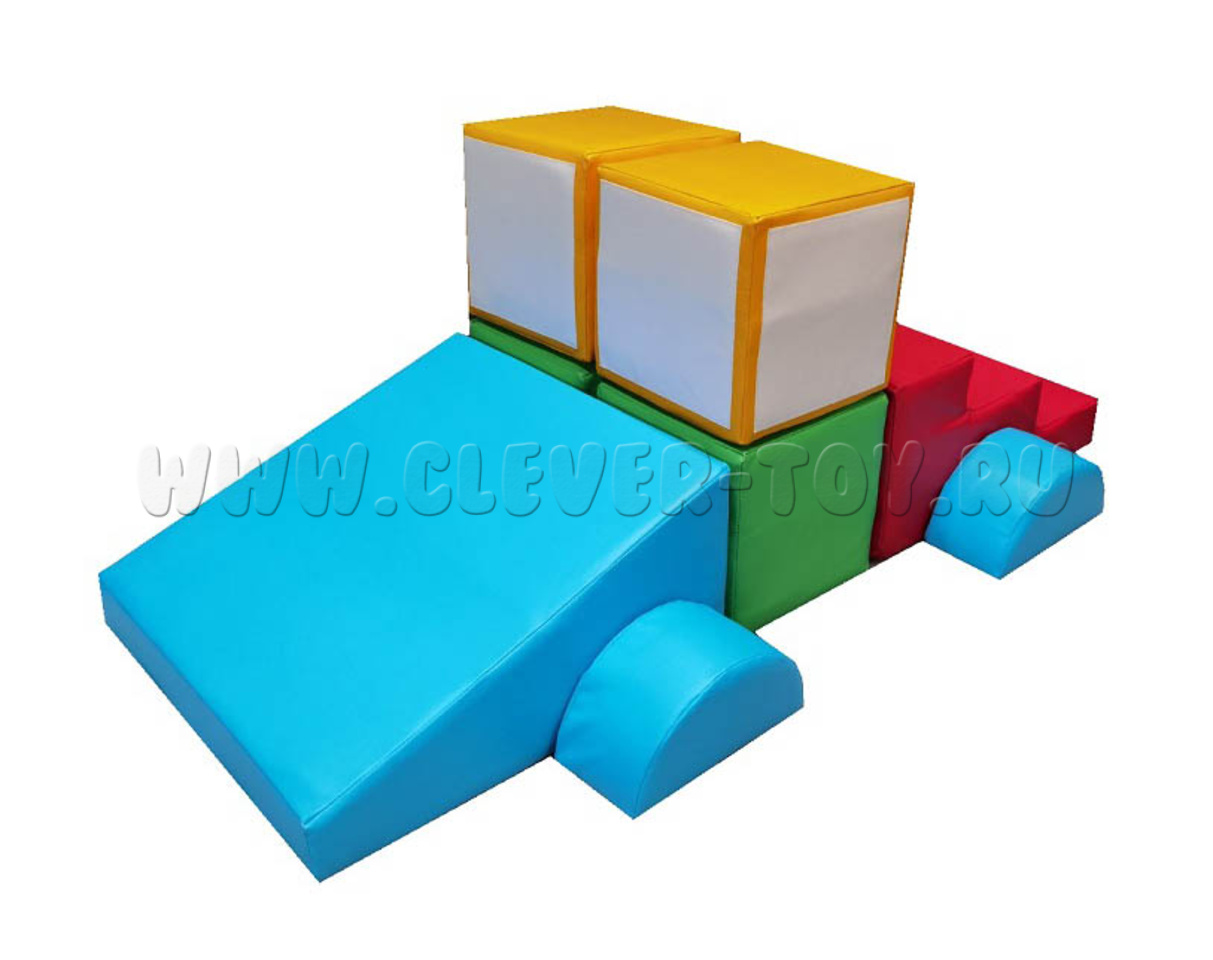 Комплектация: 10 предметов куб - 24*24*24 – 4 шт. полуцилиндр – 25*12,5*12,5 – 4 шт. горка – 48*48*24 – 1 шт. ступень - 48*48*24 – 1 шт.